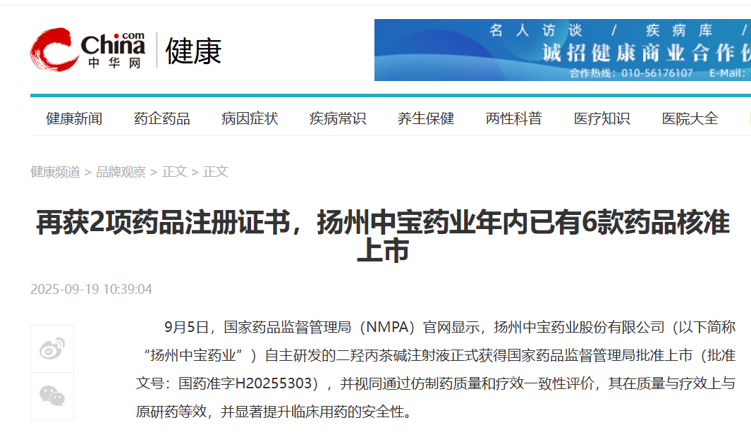再获2项药品注册证书,扬州中宝药业年内已有6款药品核准上市